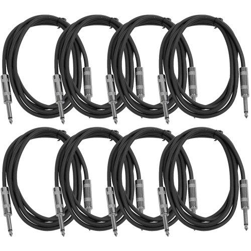 TS Patch Cables - Model # SASTSX-6 (8 Pack), 1/4" TS Male to 1/4" TS Male, 6 Feet, Heavy Duty Flexible Rubber Jacket, Color: Black, Shielded Cables Brand New, One Year Warranty Unbalanced 1/4" cables are typically used to connect mixers to equalizers, crossovers, compressors, effects units or amplifiers...anywhere that requires an unbalanced 1/4" connection. TS 1/4" cables are also used for guitar, bass guitar, and instrument cables as well. 22g Oxygen-Free Copper (OFC) conductors for enhanced signal clarity and superior RF rejection