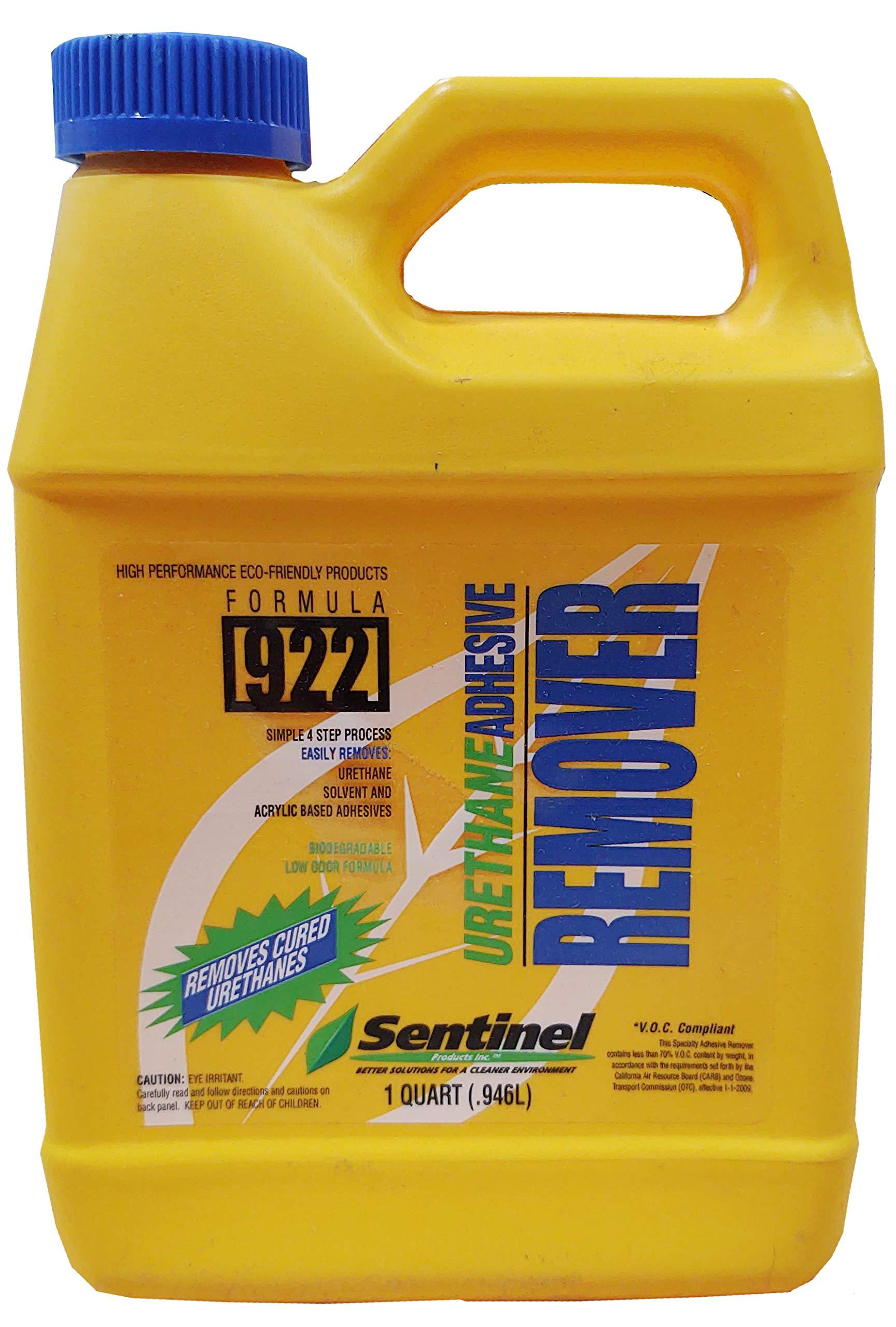 SENTINEL 922 URETHANE ADHESIVE REMOVER is a low-odor, readily biodegradable solution, specially formulated for cleaning and removing urethane and solvent adhesives used for installing wood floors. 922 rinses with water, leaving no residue behind. For Removing Urethane and Solvent Adhesives: While 922 works on urethane and solvent-based adhesives, we recommend that you test it on a small area first. 1. Wet the entire adhesive surface with 922, using a sprayer or mop. Allow 922 to soak and penetrate for 30-60 minutes, depending on the thickness of the adhesive. 2. Scrape the bulk of the softened adhesive from the surface with a floor scraper (razor scrapers are preferred). 3. If necessary, protect walls, drains, cracks, and other flooring with an absorbent. Reapply 922 and agitate using brooms or stripper pads. Liquid adhesive can be absorbed using kitty litter, sawdust, etc and then removed. 4. Wash and rinse floor thoroughly with SENTINEL 810 and water to ensure a clean surface. Allow to dry completely. For Removal of Glued Down Wood Flooring: 1. Cut the wood surface using a circular saw into 6to 8 squares. Set the saw deep enough to cut through the flooring down to the subfloor but not so deep as to cut the subfloor. 2. Vacuum all sawdust from the floor and from out of cut lines. 3. Apply liberal amounts of 922 to the cut lines using a squeegee or mop making sure that all of the 922 product penetrates the cut lines. Typical coverage should average 75 ft2/gallon. Allow 922 to soak and penetrate under the wood for 4-8 hours. 4. Using a spade or similar tool, pry up old wood flooring. Squares should be intact and easy to remove with little effort. Once flooring is removed, follow directions for removing adhesives from subfloor.