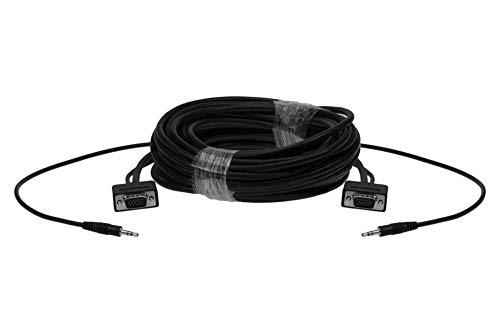 Ideal for connecting any VGA/QXGA video with audio to any computer, switch or splitter with HD15 female port. Compatibility with both PC and HDTV applications. Connectors: HD15 SVGA Male + 3.5mm (Audio Stereo) to HD15 SVGA Male + 3.5mm (Audio Stereo) High-End ferrite further enhances shielding and performance. Double shielded for prevents signal loss and screen ghosting & loss of color. Fully molded connectors with thumbscrews provide a quick and easy connection every time. UL Certified 28 AWG Length: 50ft