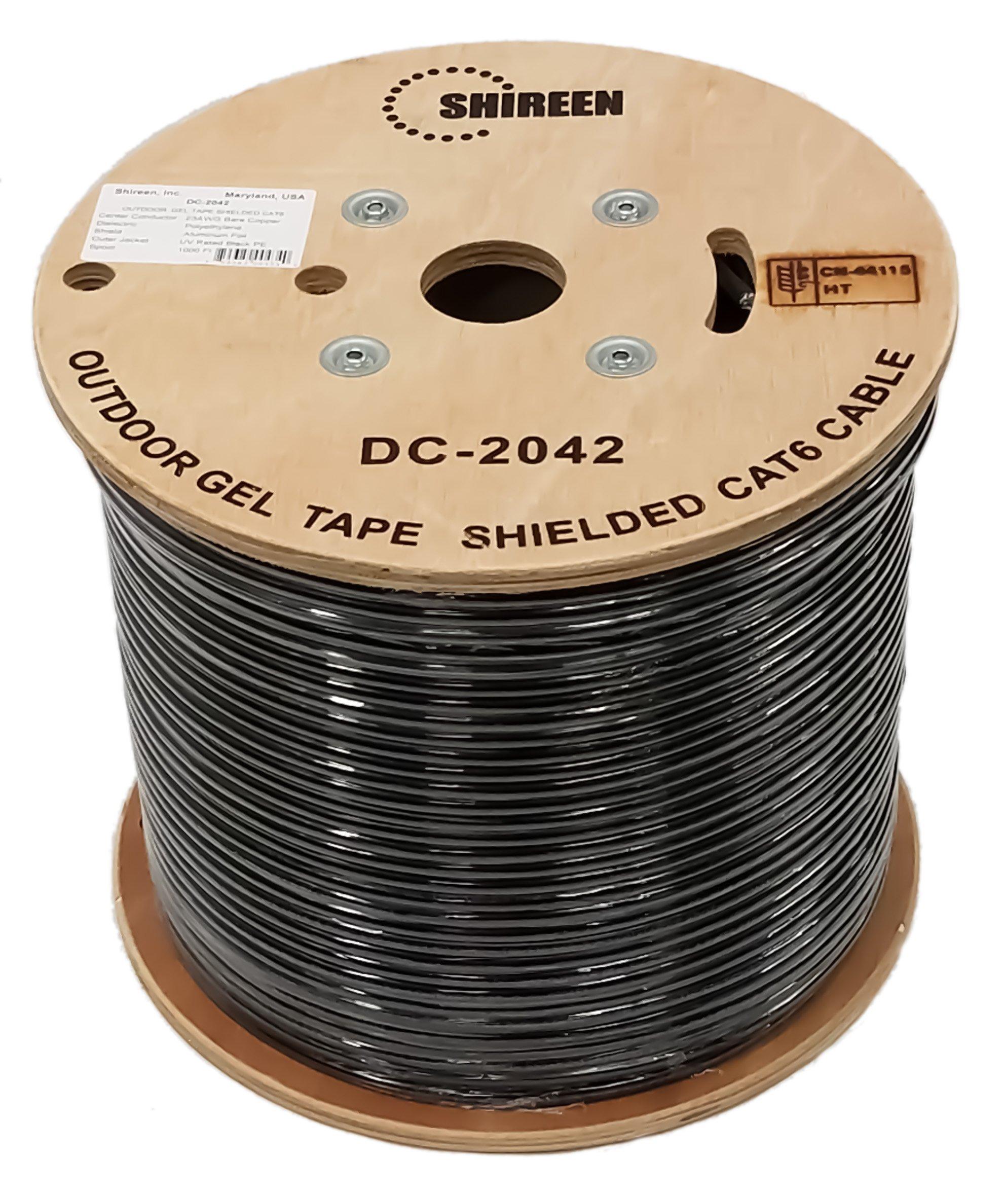 Shireens DC-2042 is a high quality Outdoor FTP (Foil Twisted Pair) CAT6 Shielded with Dry Gel Tape. It features 4 twisted pairs of 23 AWG wire and center spline with Aluminum foil shielding, LDPE + Dry Gel Tape and a drain wire. Excellent for use in all outdoor networking, data transfer and phone lines applications. It supports 10/100/1000Mbps.