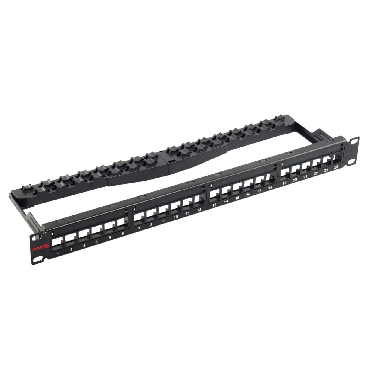 - Durable Universal Fit - The Simply45 24 Port Keystone Patch Panel features a universal fit and heavy-duty steel construction, ensuring durability for network racks, cabinets, and wall brackets.