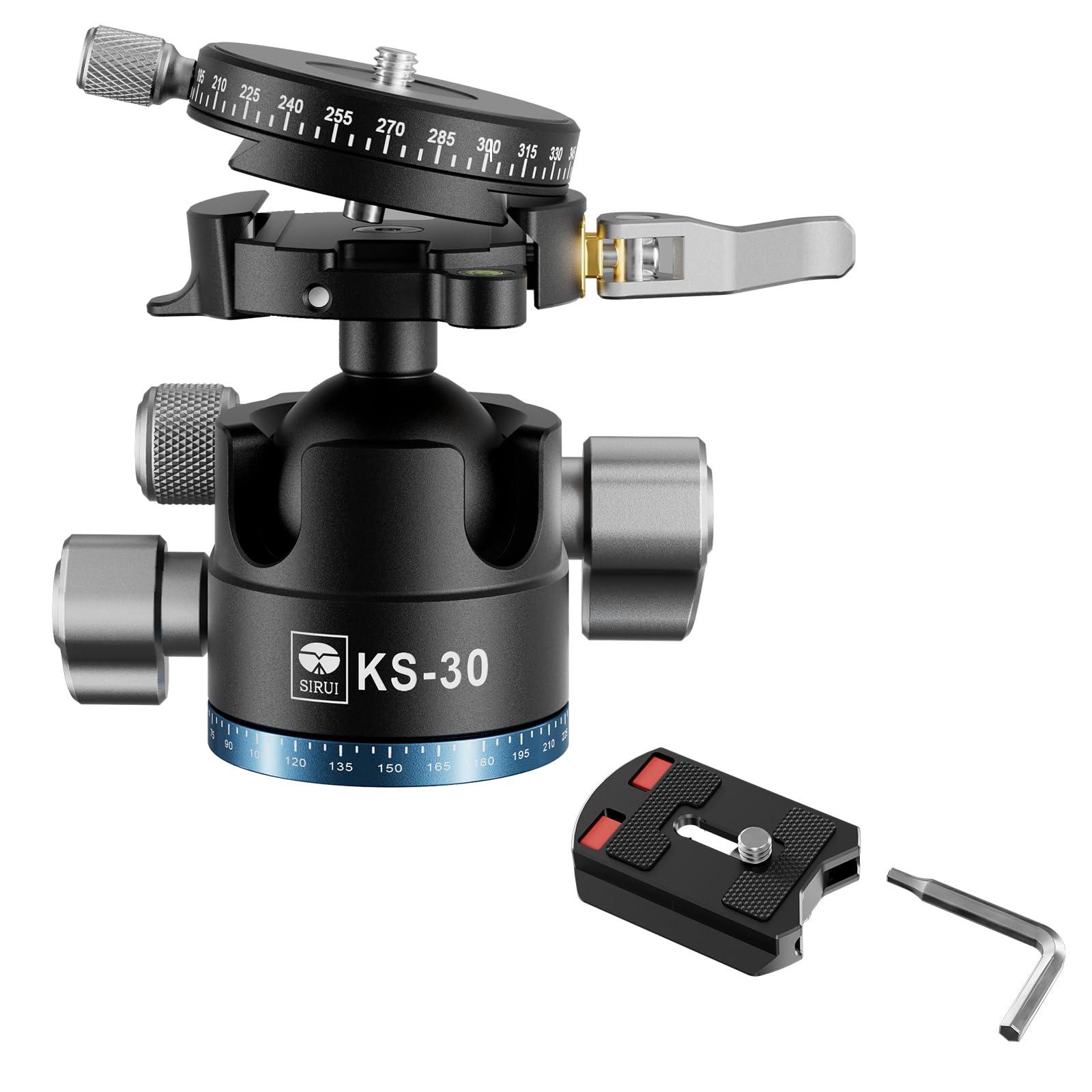 Sirui SIRUI 36mm Low Profile Ball Head KS-30, 360 Double Panoramic Aluminium Alloy Tripod Head for Camera, Camcorder, Professional Heavy Duty Ball Head for Tripod, Monopod, Camera Slider, Max Load 20KG