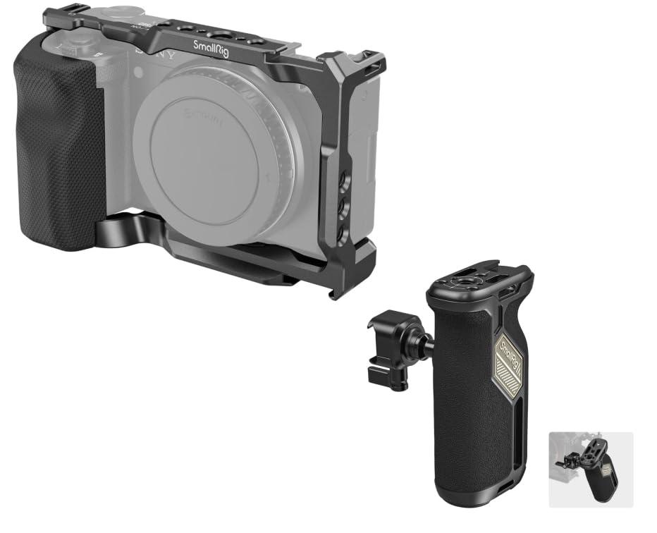 - Silicone Handle with Comfortable Grip: The cage has a built-in detachable silicone handle designed according to ergonomics. The cage is fixed by a 1/4"-20 screw at the bottom, and the camera can be double-fixed with the included anti-deflection lock to further prevent deflection.