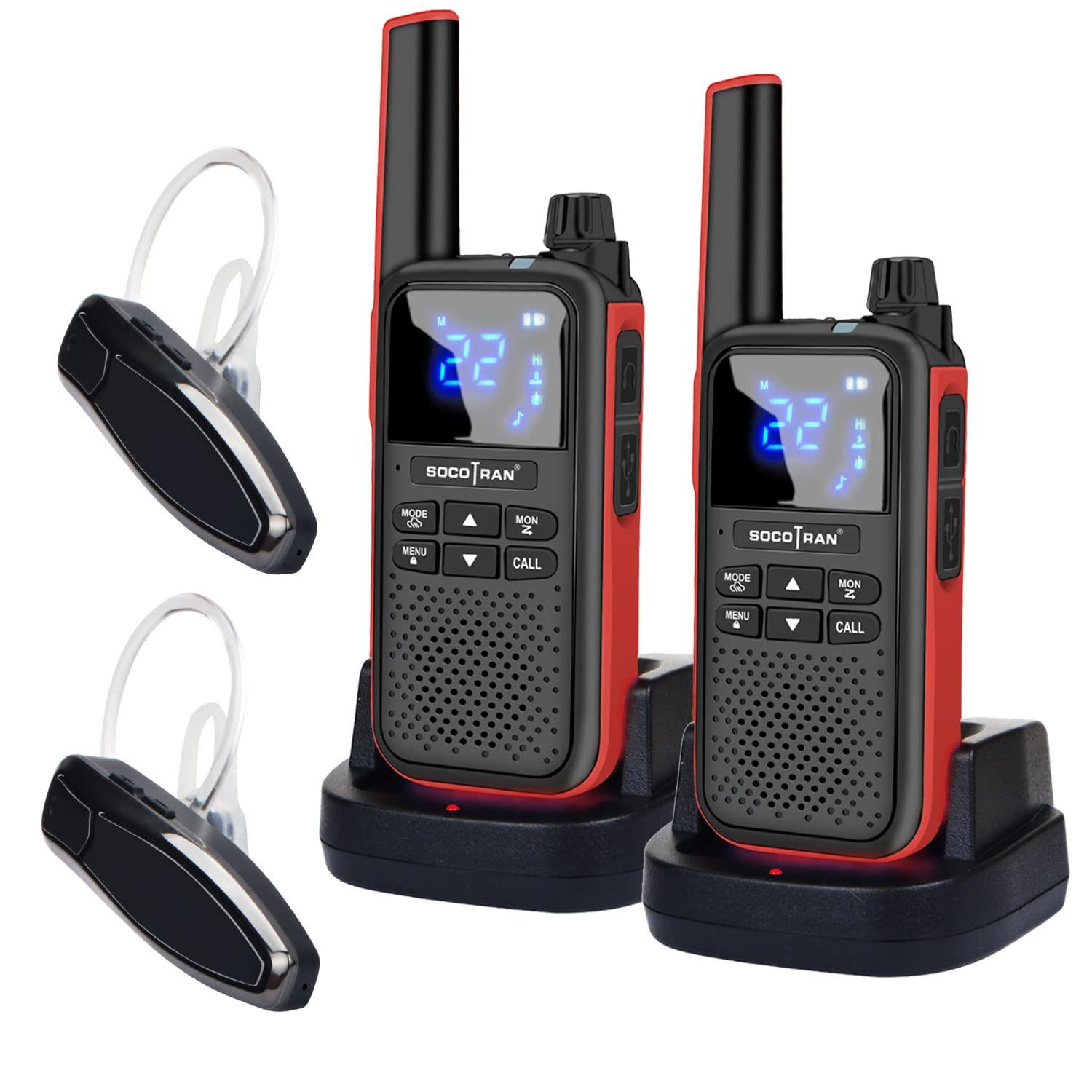 SOCOTRAN Walkie Talkies for Adults,Rechargeable Walkie Talkies with Bluetooth Earpiece Headset Wireless,NOAA Two Way Radio with USB Charging Cable & Vibration,for Car Camping Outdoor Long Talk Range