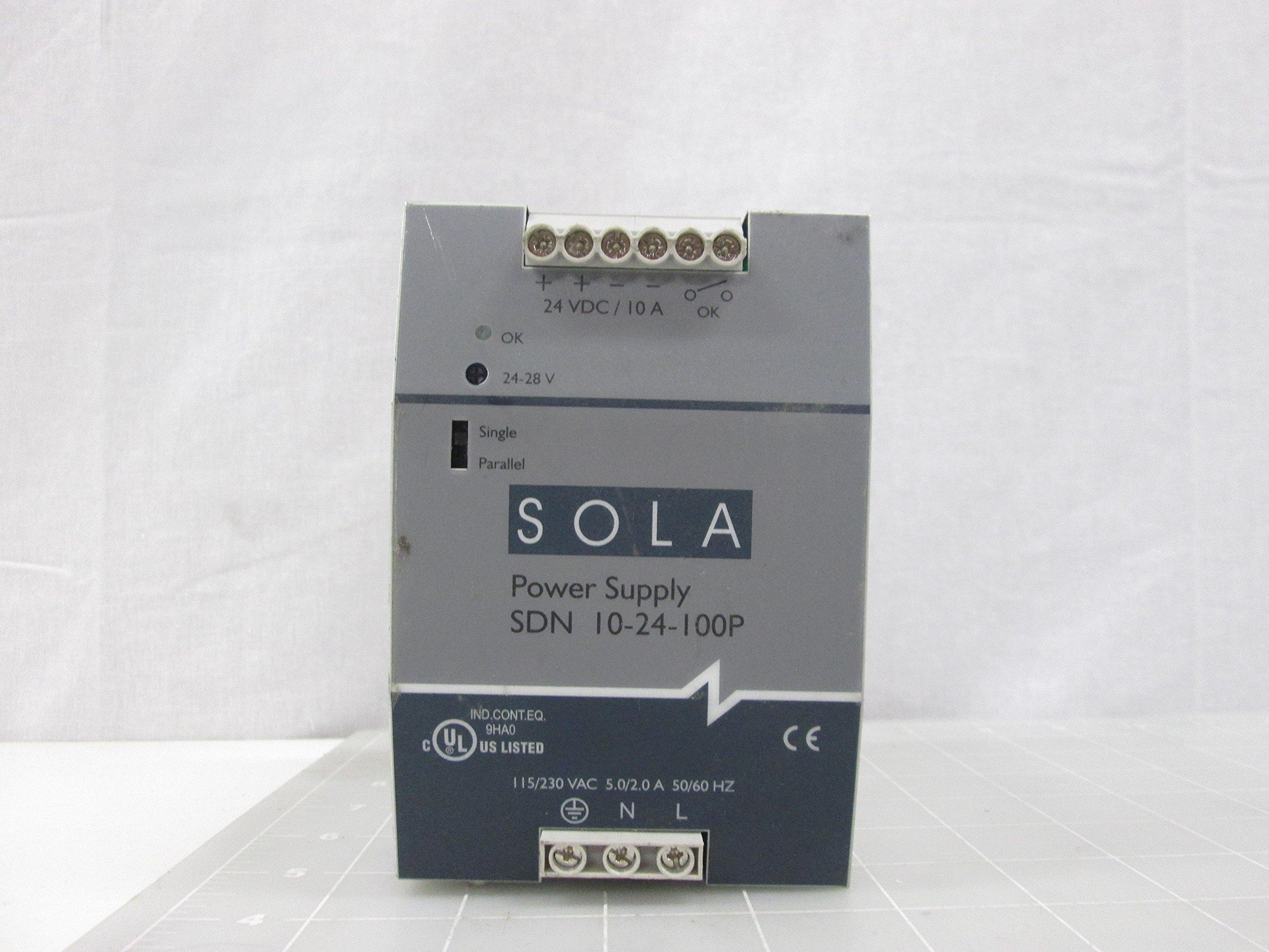 SOLA-HD SDN10-24-100P Power Supply; 24VDC@10A; 115/230VAC In; Enclosed; DIN Rail; Industrial; SDN Series