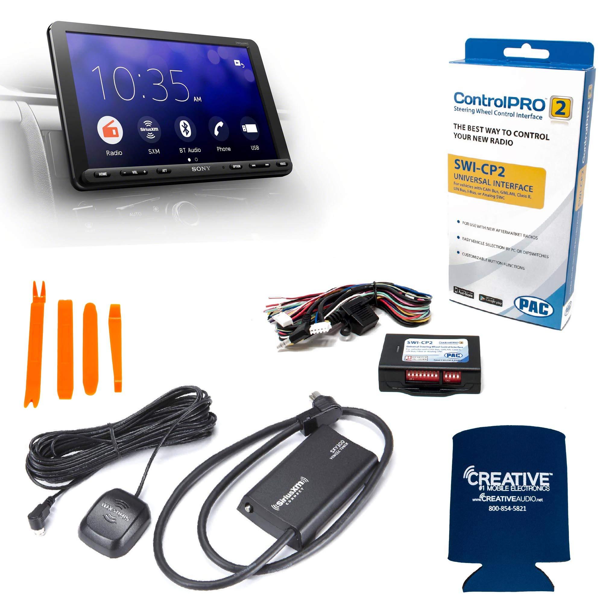 Sony XAV-AX8000 8.95" Bluetooth Media Receiver with SiriusXM Satellite Radio Kit, Steering Wheel Interface-This bundle includes: Sony XAV-AX8000 8.95" (22.7-cm) Media Receiver with Bluetooth, SiriusXM SXV300v1 Connect Vehicle Tuner Kit for Satellite Radio, and PAC Audio SWI-CP2 Universal Analog/CAN-Bus Steering Wheel Control Interface.