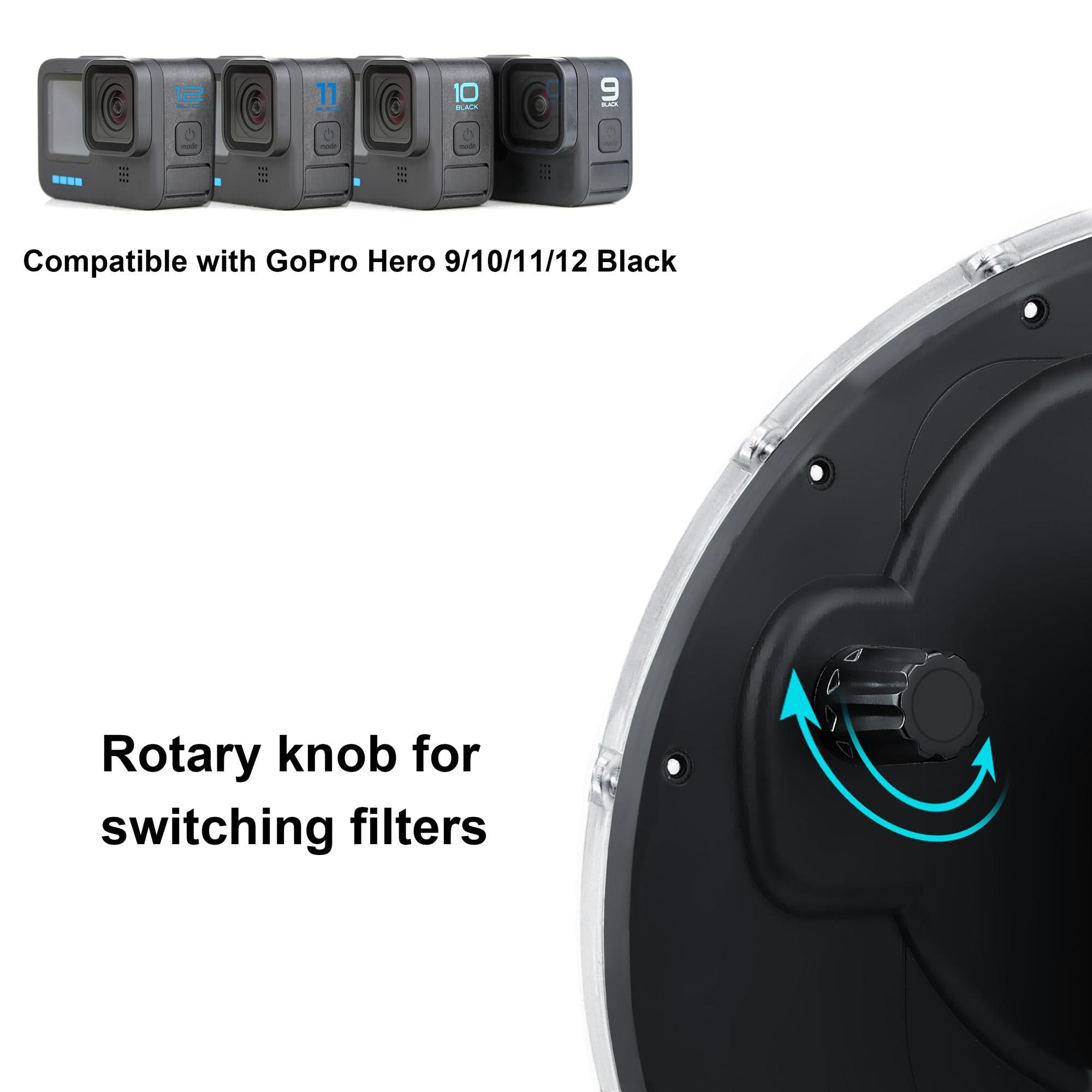 - Compatibility: The dome port with filters is compatible with GoPro HERO 13 Black / HERO 12 Black / HERO 11 Black / HERO 10 Black / HERO 9 Black action camera