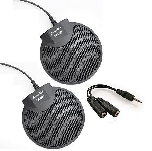 Two CM-1000 microphones plus Y-splitter. Maintains true left/right separation when used with any of our conference recorders, with the included 3.5mm Left/Right Y-Cable. Channel separation re-creates the stereo sound field - perfect for conference meetings where everyone is talking at once, or you need to cover a larger room or area!
