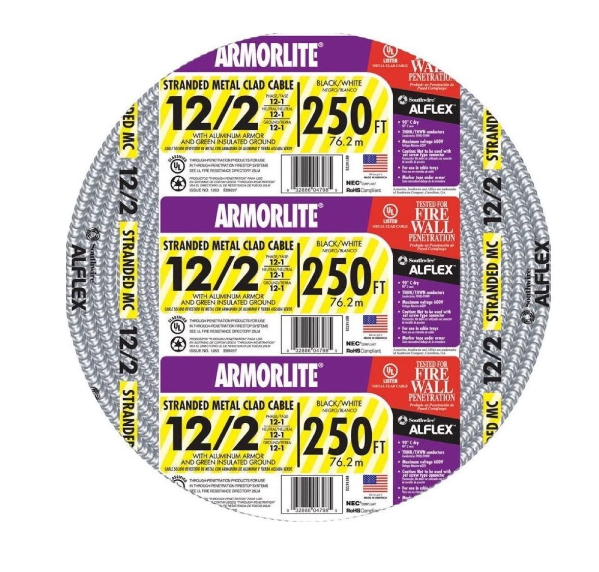 Southwire Stranded Aluminum Cable Thhn 12/2 Ga 20 Amp 600 V 250 \' B/W/Green