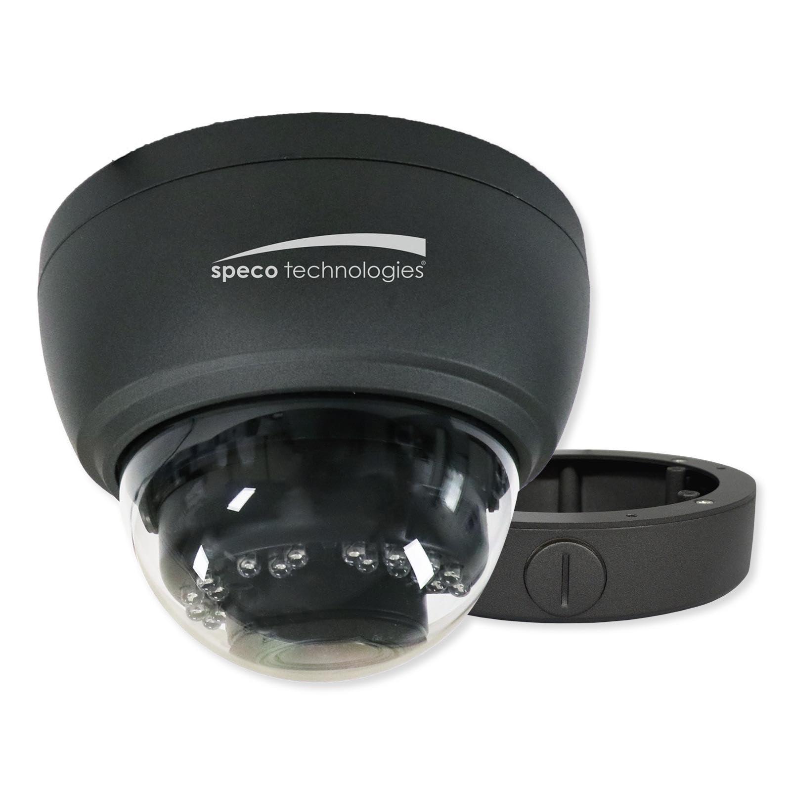 Monitor your outdoor property in high definition with the Speco 2MP HD-TVI IR Dome Camera, 2.8-12mm Motorized Lens. This HD outdoor surveillance camera captures video footage in 1080p resolution @ 30fps through a 2.8-12mm motorized lens to deliver to a connected digital video recorder (DVR) via coax connection. The camera utilizes a powerful IR cut filter and CMOS image sensor to reduce saturation and see in near total darkness during night time operation, while also employing true wide dynamic range operation (WDR) to improve the image quality of the camera under high-contrast lighting conditions. The camera is protected by IP67 rated weather resistant housing that includes a built-in heater and anti-fog glass to reduce condensation and freezing during inclement weather and ensure consistent operation. Additionally, this camera includes a paintable, snap-on Chameleon Cover that helps camouflage your camera and blend in with your build-ings decor. Dome camera with 2.8-12mm motorized mens captures Full HD 1080p @ 30fps resolution over coax (HD-TVI) True WDR (wide dynamic range) maintains image clarity in high contrast areas IR cut filter allows the camera to record in near total darkness Full Object Storage Drive (OSD) operation via on-board control and UTC (up the coax) Capture and record footage in multiple format options (TVI, CVI, AHD, CVBS) Built-in heater and anti-fog glass reduces condensation and frost build up in rainy, humid, and freezing conditions Paintable Chameleon Cover helps the camera blend in to match any dcor 12VDC & 24VAC dual voltage operation Weather resistant (IP67) and vandal resistant casing and junction box for most environmental conditions