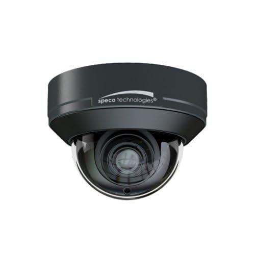 - The O8FD1M from Speco is an 8-megapixel network outdoor IR dome camera with a 2.8-12mm lens and dark gray housing.