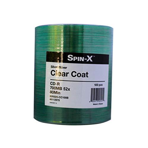 100-pack Spin-x 52x CD-R Silver Thermal Printable Clear Coat, Clear Hub