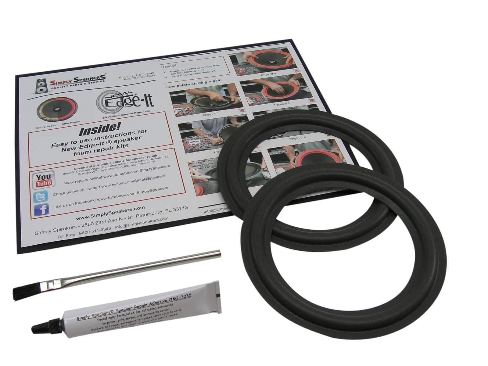 6-1/2" Speaker Foam Repair New-Edge-It Kit, Part # FSK-6.5 Outer diameter: 6-1/4" (159mm) Roll outer diameter: 5-1/2" (140mm) Cone diameter: 4-3/4" (120mm) Inner diameter: 4-1/4" (108mm) Foam roll width: 7/16" (11mm) Variances up to 1/8" (3mm) from your speaker measurements are OK. 6-1/2" angle attach woofer foam repair kit. New-Edge-It part # FSK-6.5 Fits most 6-1/2" frame speakers with 4-3/4" conePlease check the model and size of your speakers before ordering to be sure you receive the correct foam edge repair kit.