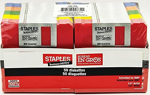 Staples 50/Pack 3.5 in. 1.44MB Multi-Colored Floppy Diskettes, PC/IBM Formatted