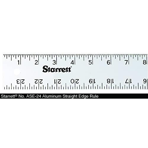 The Starrett ASE-24 24" Straight Edge Aluminum Rule is parallel, accurate, and flexible rule made of anodized aluminum offering lasting durability and resistant to corrosion than standard aluminum. With over five generations of practical innovation, exceptional quality and unmatched precision, Starrett layout tools are designed to blend durability with accuracy. Whether you are a professional tradesman or a do-it-yourselfer, you can always trust that Starrett layout tools will provide the solutions for your job. At the time of manufacture, Starrett precision measuring tools meet or exceed accuracy and performance requirements of national and international standards, and are traceable to the United States National Institute of Standards and Technology. Starrett tools are essential for the many products that are measured, cut, formed or assembled. They are used in a broad range of manufacturing facilities as an essential part of metalworking, the manufacturing of durable goods, for working with exotic materials and in a wide variety of traditional and newer industries such as electronics, aerospace, energy and many others.