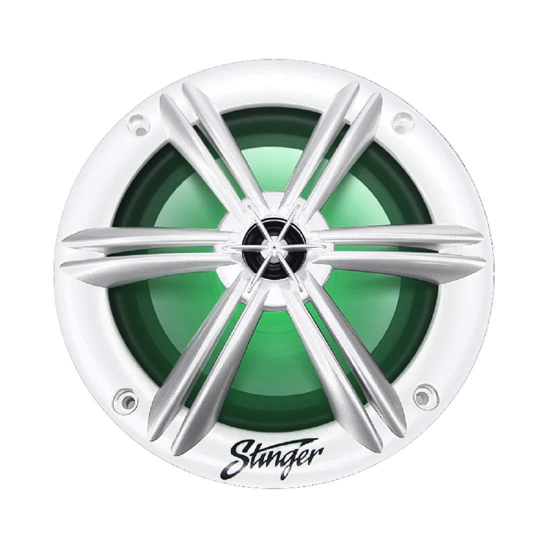 PRECISION NON-CORROSIVE TERMINALS Create a solid connection in any environment 6.5" 4-ohm two-way speaker system Built-in RGB lighting providing multiple color options and wireless remote Element resistant, marine grade construction 75W RMS / 150W Peak power handling Poly carbon cone with resin coated cloth surround Oversized 1" KSV voice coil Pie dome tweeter Built-in crossover UV treated molded polymer with integrated grills Splash-resistant sealed motors Includes sealing gaskets & installation hardware
