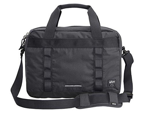 - Main compartment reveals padded laptop cell (will hold most 11-14 inch laptops) and integrated tablet sleeve. Paperwork pocket for a folder and internal organization for business cards, pens, etc.