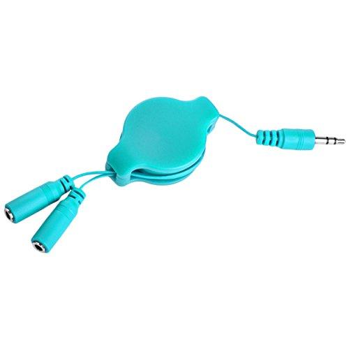 SumacLife RetractHeadphoneSplitBLU Retractable 3.2-Feet Headphone Splitter Cable, Blue