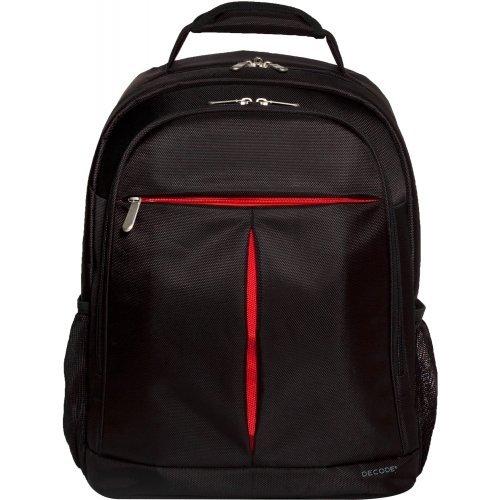 Sumdex Decode Computer Backpack with top loading padded compartment for up to 15.6" notebooks, large capacity compartment for books, binders, files, multi-functional work station compartment for accessories, side pockets for smaller accessories, padded back panel design for cool carry comfort, ergonomic "S" shaped adjustable shoulder straps and padded top carry handle, made of 1680d water repellent Polyester fabric.