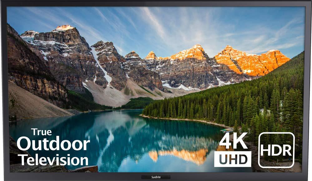 • TRUE OUTDOOR TV. SunBrite's Weatherproof 4K HDR Television - the Veranda Series TV is optimal for full-shade outside living areas like a covered patio or screened gazebo.