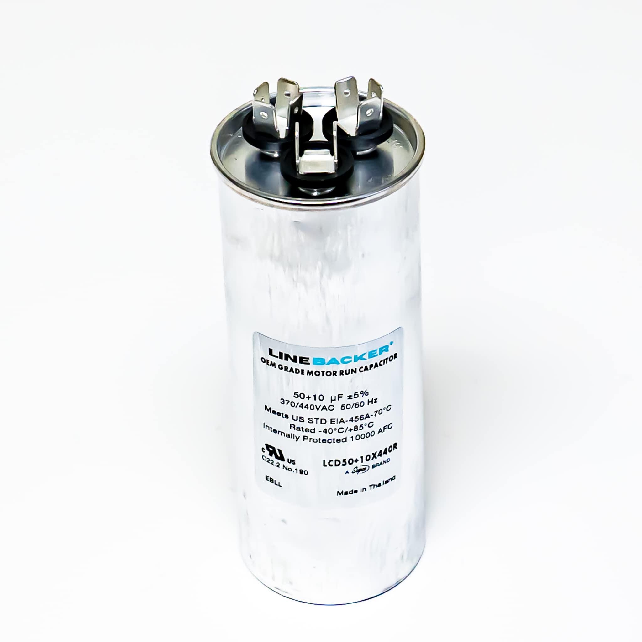 Supco Capacitor Round Dual Run 50 + 10 uf 370/440 Volts for HVAC Motors Compressors LCD50+10X440R Linebacker