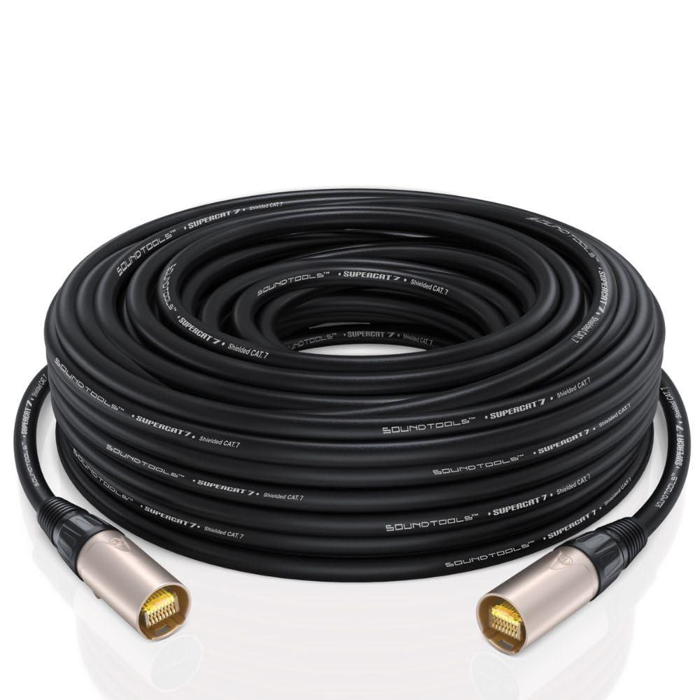 In a world where 24-bit/192kHz data-intensive consoles demand seamless, high-capacity data flow, the SoundTools SuperCAT 7 CAT7 cable is your go-to solution. Expertly engineered for durability and top-tier performance, it features a robust polyurethane (PUR) jacket thats built to withstand abrasion while maintaining flexibility and ease of coiling. Whether youre managing main drive-lines, digital snakes, or analog XLR transmissions over CAT signals, the SuperCAT 7 delivers exceptional crosstalk rejection, ensuring flawless performance in demanding environments. When paired with SoundTools Analog Audio Over CAT solutions, such as the CAT Box 8 or CAT Tails, this cable effortlessly carries up to four lines of analog XLR, COM, DMX, or AES3 over impressive distances. The advanced S/FTP shielding protects your signals from interference, ensuring consistent delivery of phantom power when you need it most. Labeled as "Performance Grade," the SuperCAT 7 isnt just technically superiorits built to meet the rigorous demands of professional audio environments, offering unmatched reliability and pristine signal transmission that todays professionals require.