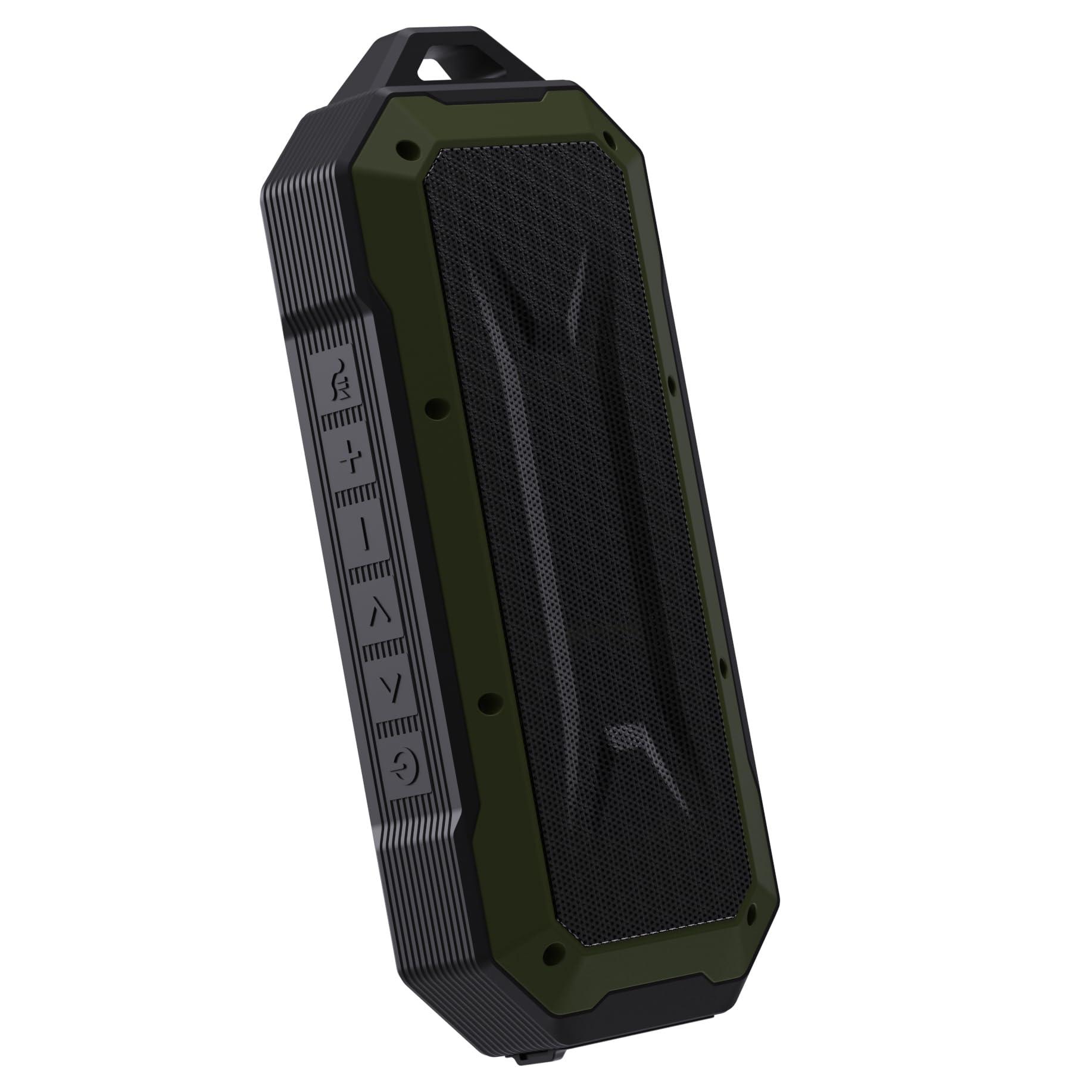 - : With a shockproof rubberized impact-resistant silicone enclosure, this speaker can handle the rigors of outdoor adventures.