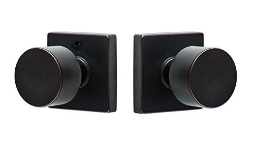 With its clean appearance, sleek lines, and smooth function, this knob harmonizes with modern urban trends in design and aesthetics. This is a modern privacy knob with a square rosette, featured in a Vintage Bronze finish. Used on bedroom and bathroom doors where a locking option is desired. This knob offers an affordable and fresh approach to upscale style and utility.