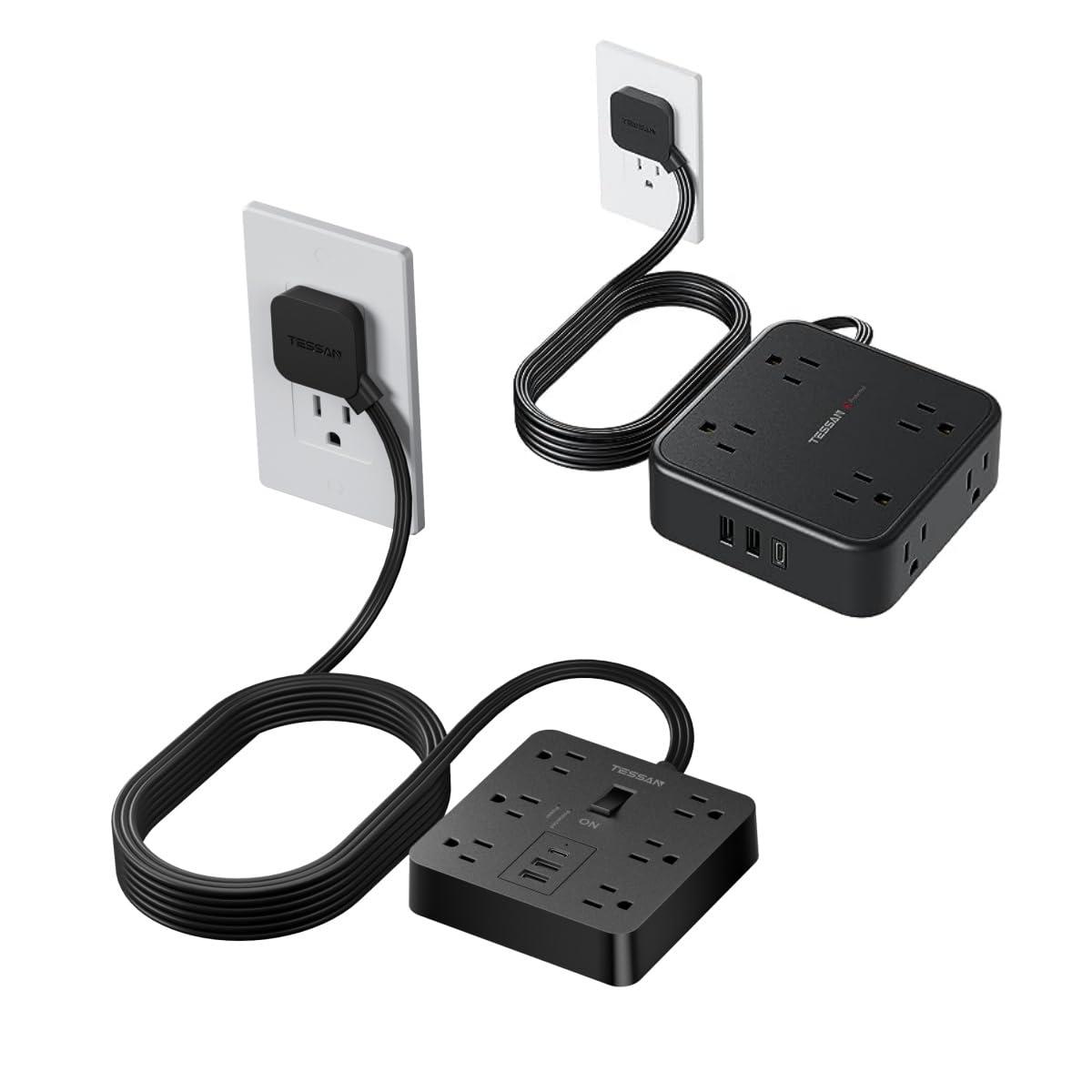 - Flat Plug Power Strip: With only 0.35 inch ultra slim design, this black power strip has a flat plug in real sense; Flat extension cord can fit in tight spaces more easily, hiding behind furniture, beds or refrigerators