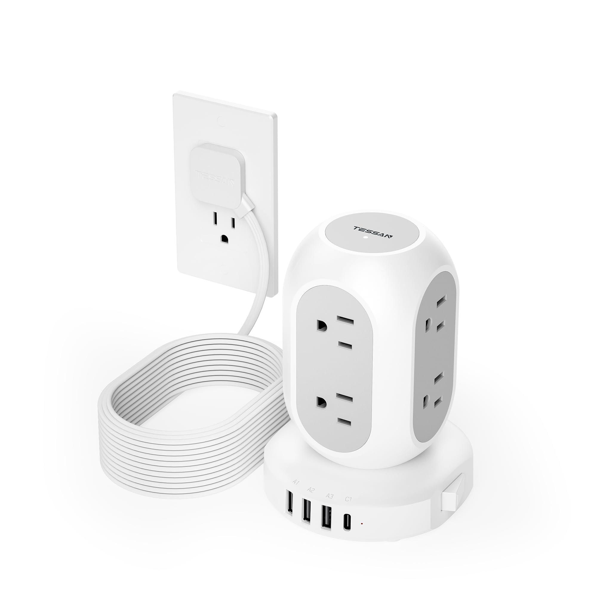 - Power Strip with USB Ports: TESSAN power tower is equipped with 4 USB ports to meet the charging needs of different USB devices (Total 3A, 2.4A each USB A Max); 15W USB C outlet can quickly charge phone, tablet and other devices