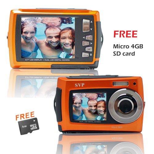 The SVP Aqua 5800 Waterproof Digital Camera features a dual color display with 4x digital zoom. The 1.8 inch front TFT color display is large enough to allow you to see yourself in the shot before taking the picture. 2.7 inch rear LCD display provides easy viewing of the photos. It is a 18 Megapixel camera with a 8.5mm lens. Easy to use and is suitable for any trip! It also does not stop you from capturing the perfect moments underwater! The camera supports up to 32GB of Micro SD card and is compatible with Win XP(SP3), Vista (32/64), Win 7(32, 64) and Mac OS x 10.6.8 or above.