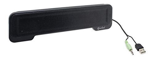 Connect land CL-SPK20138 speaker is a light weight. USB powered sound bar. Simply connect it to computer 3.5mm jack to begin enjoying unmatched Stereo sound. Easily attaches securely on top of most laptop computers with easy plug-and-play setup. Requires an USB port for power.