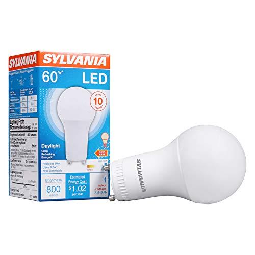 Bring modern and bset-in-class lighting into your home with energy-saving SYLVANIA 8.5W LED A19 daylight light bulbs! This 8.5 watt LED lamp is specifically designed to replace 60 watt A19 incandescent bulbs. At just 8.5W, the SYLVANIA LED bulb illuminates brilliant white with 800 lumens. Our LEDs also allow you to save more on your electricity bill. In fact, this bulbs estimated annual energy cost is just $1.02. With a lifespan of 11,000 hours , this LED lamp can emit 800 lumens without stopping or losing power. Whats more, SYLVANIA LED lights dont need to warm up time, dont overheat, and dont emit harmful components. Our LED lights are UV-, IR-, and mercury-free. Additionally, they can be safely installed in ceiling light fixtures or floor lamps (not for use in fully enclosed fixtures). If you like reliable, modern lighting in your living room or workspace, then this products 5000K daylight color is just right for you!.