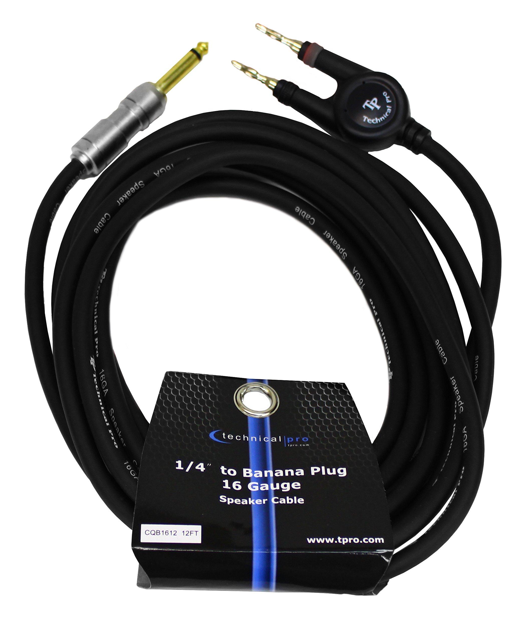 Technical Pro CQB16100 100' 1/4"to Banana Plug Speaker Cable, 16 Gauge