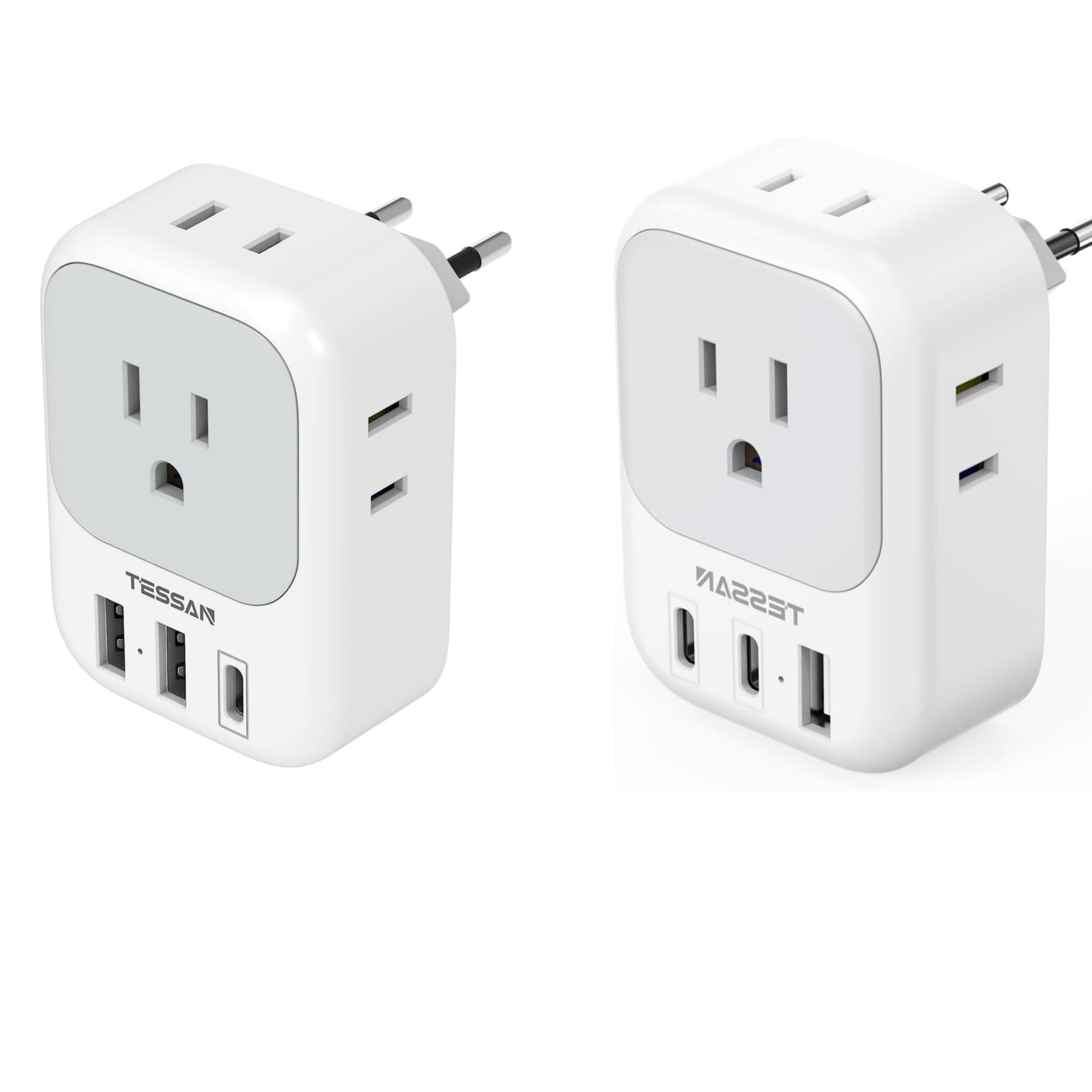 - 7 in 1 US to Europe Plug Adapter: This outlet converter US to Europe can turn 1 EU Type C socket into 4 American outlets and 3 USB ports, charge up to 7 devices at a time without blocking; Ideal for traveler, business man and foreign student use in airports, hotels and dorm room