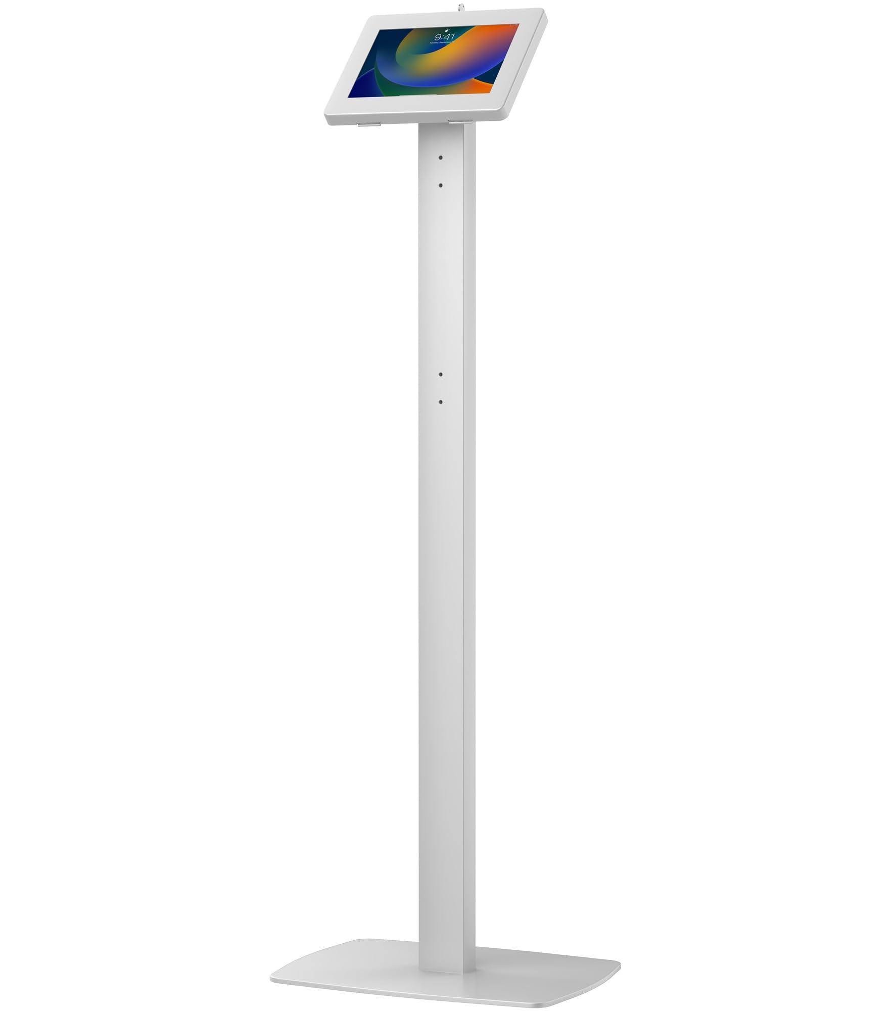 This sturdy and elegant Premium Thin Profile Floor Stand with Security Enclosure is the perfect addition to any retail store, restaurant or office space. The padded enclosure protects your tablet from theft with a lock and key, cushioning your tablet with included model-specific foam adapters. The enclosure is designed to allow full access to your tablets charge ports and front camera. The enclosure also rotates a full 360 degrees for portrait and landscape displays. Standing 45 inches tall, this heavy-duty floor stand boasts a hollow interior for clean charge cable routing, plus a weighted base equipped with slip and scratch resistant padding. Features Heavy-duty locking enclosure Durable steel body Enclosure rotates 360 degrees Full access to camera and home button Interior cable routing system Scratch protected padding on weighted base Perfect for reception desks, waiting rooms, and more ADA Compliant Compatible with 10.2-inch (7th & 8th Generation), 11-inch iPad Pro (2020), iPad Air 3 (2019), iPad Gen. 5 (2017), iPad Gen. 6 (2018), iPad Air Gen. 1-2, iPad Pro 10.5, Galaxy Tab A 9.7, Galaxy Tab S2 9.7, Galaxy Tab S3 9.7, Galaxy Tab 3 10.1, and Galaxy Tab 4 10.1, Galaxy Tab A 10.1 (2019), Lenovo Tab 4, Surface Go, Galaxy Tab S5E, Galaxy S6 Specifications Dimensions: 45 x 2 x 1 Base Dimensions: 12 x 16 Weight: 18lbs Package contents (1) Tablet enclosure (1) Stand body (2) Keys (1) Set of hardware (1) Set of tablet adapters