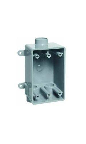Thomas & Betts electrical switch box, Non-Metallic, rigid, series: fscc, 3 gangs, 3/4 in hub, (3) 3/4 in hub cable entry, rectangular shape, integral mounting, 18 cu-in capacity, PVC, includes: integral mounting feet, CSA certified, UL E42728, for multiple through circuit terminations or where additional support is required in stub-up applications.