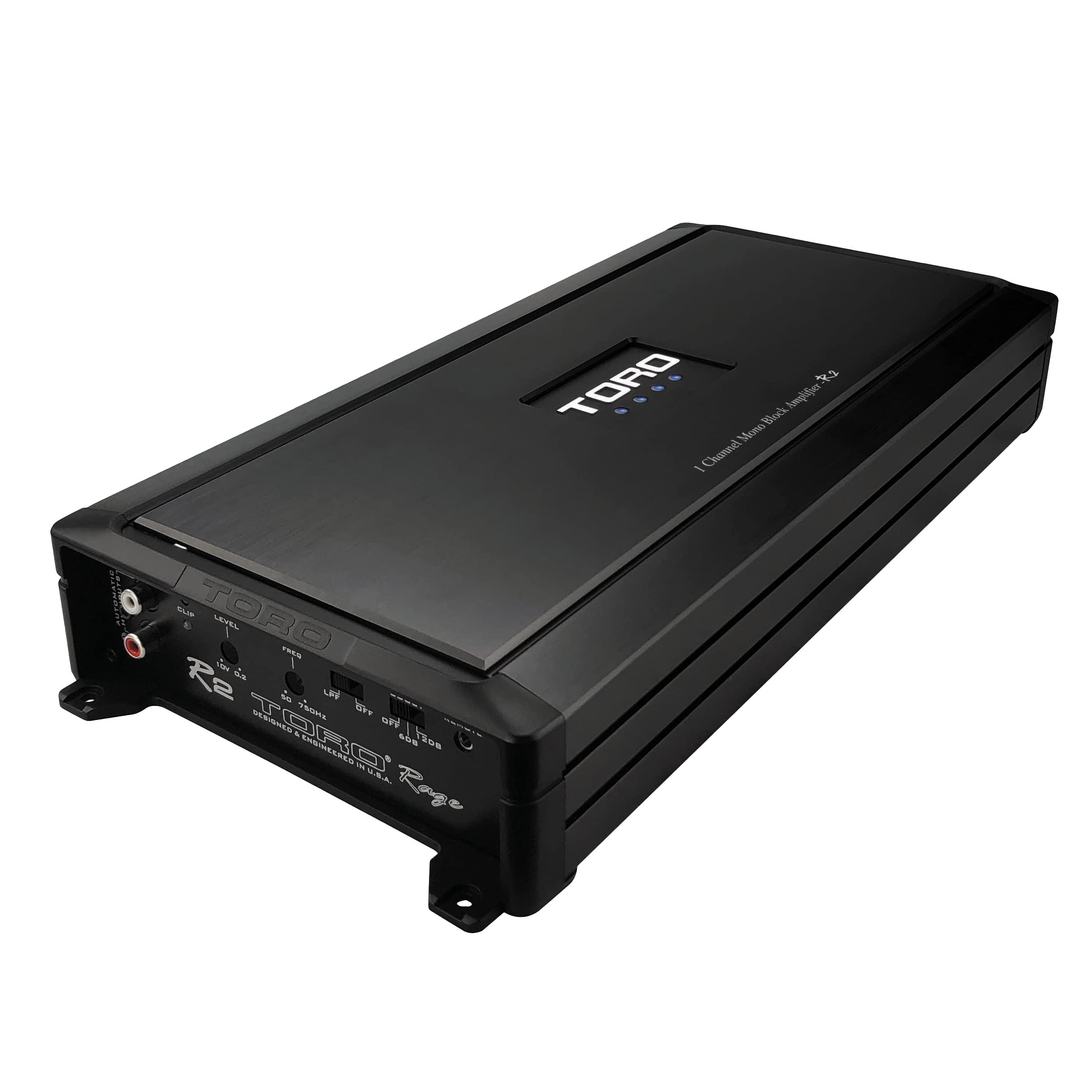 In a competition system this becomes more critical. TORO Tech presents the ultimate low frequency solution for both competitors and audiophiles alike. Our Rage series Mono Block Amplifiers feature a MOSFET power supply to insure an inexhaustible stream of voltage under all conditions. These Mono Block Amplifiers utilize a Class A/B design enabling high efficiency and cool running under typical conditions. With competitors in mind we have designed the R2 to remain stable with as little as 2 Ohm loads. The R2 features variable low pass crossovers for system flexibility. To eliminate any possible weak link weve spared no expense in offering the best possible connections with nickel plated RCA jacks for as well as nickle plated terminal blocks for power input & speaker output. Stable at 2 Ohms with a high quality A/B Class PCB layout that includes built in auto sensing turn on function for vehicles that do not have the ability for RCA output, selective Bass Boost EQ for fine tuning, soft delay remote turn on/off circuit that eliminates pops and clicks. The R2 Amplifier utilizes a MOSFET power supply for high output and increased stability, variable gain control and remote level control port for optional controller. With a frequency range for a monoblock amp from 12Hz ~ 50kHz this versatile amp can power a wide range of speakers. What does all this translate to? Simply, amplifiers you can count on for rigorous competition and yet flexible and affordable enough to use as any system anchor.