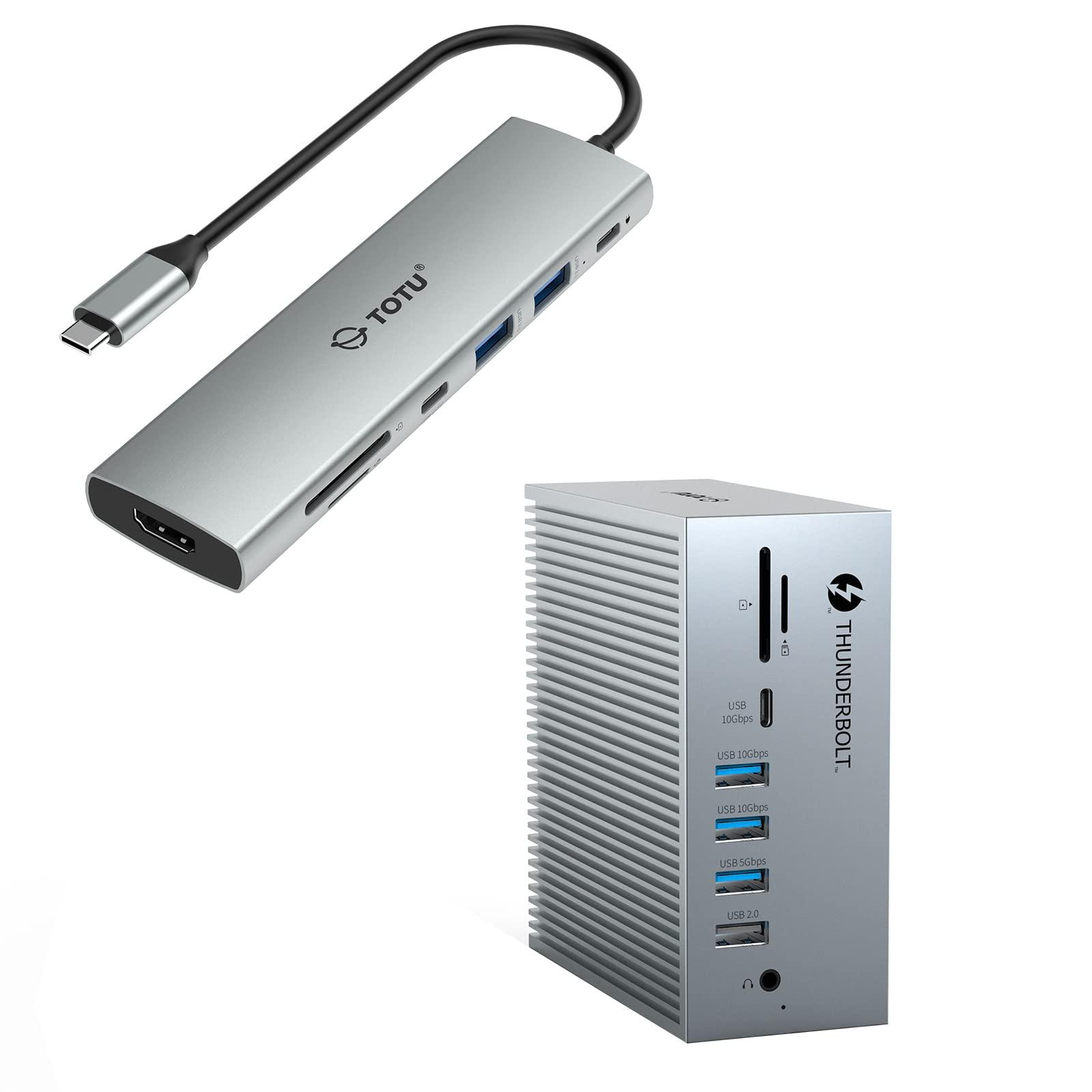 Thunderbolt 3 Dock, TOTU 18-in-1 Thunderbolt 3 USB C Docking Station with 8K DP, 1 Gbps Ethernet, USB-A 10Gbps, USB-C 3.2, SD/TF, Audio, Optical Out and Other USB C Hub,TOTU 7-in-1 Type C Hub with 4K HDMI Port, 2 USB 3.0 Ports, 1 USB C 3.0 Port, SD/TF Card Reader, 90W PD USB-C Power Delivery, for MacBook and Other Type C Laptops