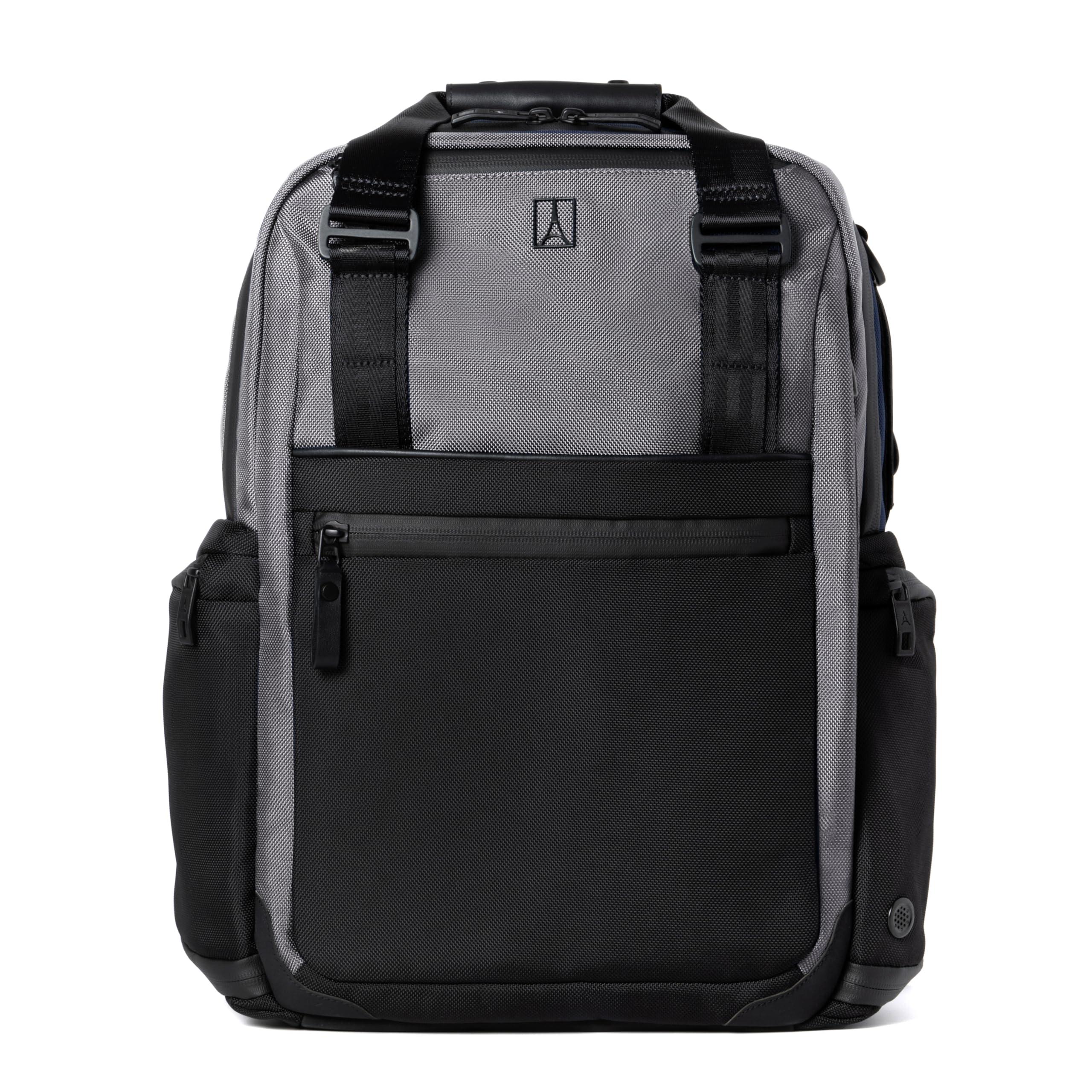 Elevate your commute with the backpack thats got it all. Made by pros for the modern pro, the Travelpro Altitude Medium Expandable Laptop Backpack 25-30L is fresh, functional, and ready for anything, thanks to compartments for all your gear and a zippered expansion that boosts packability up to 20%. From daily commutes to travel, this bag tackles every trip like a boss with padded sleeves for your laptop and tablet, multiple anti-theft features, full-grain leather touch points, and airline-grade aluminum hardware. To stay looking sharp, high-density, ballistic ECOFAB exterior with DuraGuard coating resists stains and abrasions. Inside, the ECOFAB lining with H2O guard is easy to clean and made from 100% recycled plastic bottles, so you're also helping the planet. Plus, water-resistant and traditional YKK zippers add serious style and toughness.Cushioned shoulder straps and a comfy back panel ensure all-day comfort, while a rear strap securely stacks the backpack on your rolling luggage when you want to go hands-free