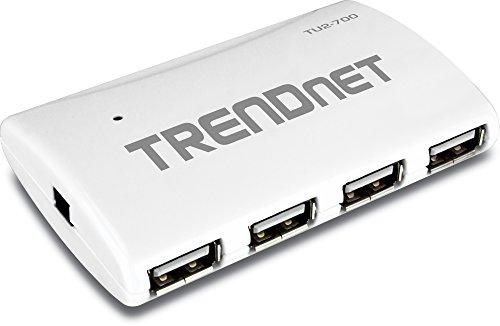 TRENDnets 7-Port USB Hub, model TU2-700, adds seven high speed USB 2.0 ports to your computer to connect USB devices such as USB cameras, memory sticks, printers, and more. No CD installation is required, simply connect the TU2-700 to your computer and plug in your devices to share data over a high speed 480 Mbps connection.