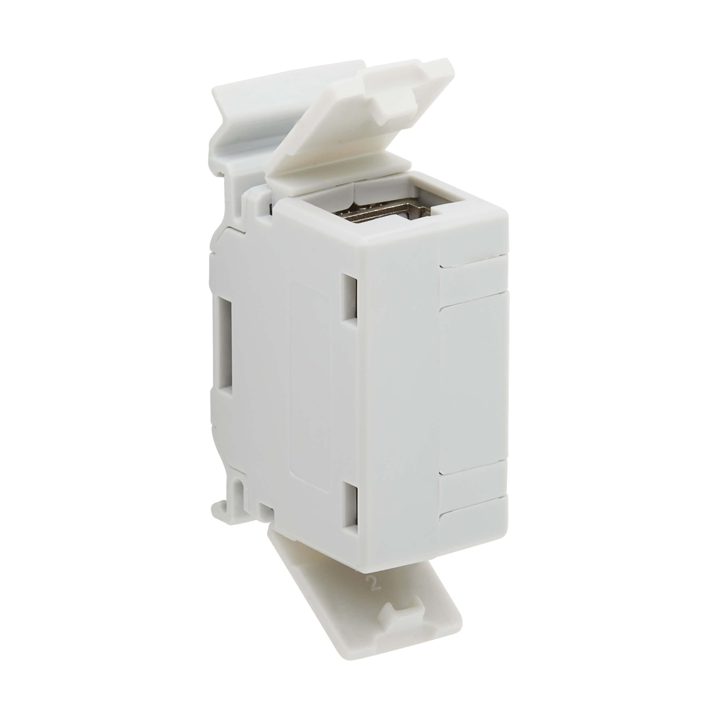 - HIGH-SPEED CABLE ORGANIZATION: Connects two Cat6a network cables to create one longer cable with a DIN-rail-mountable coupler. Keystone design and dual RJ45 ports are ideal for feed-through patching. Backward compatible with Cat6/5e/5 cables.