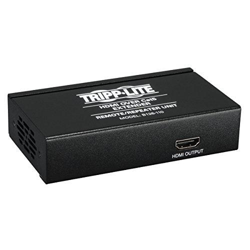 The B126-110 remote repeater unit can be added to your Tripp Lite B126-Series HDMI over Cat5 installation to increase the extension distance and/or add additional monitors. To achieve maximum distance and resolution, use 24Awg Solid Wire Cat5e/6 cable. (Tripp Lite's N202-Series) Supports 24-bit True Color (8-bits per channel), HDCP, 3D, and both stereo audio and 7.1 channel surround sound audio (7.1 channel surround sound signal will be Multi-Channel or PCM). Installation is simple; just insert the B126-110 repeater into the middle of your installation. In the case of a B126-1A1 extender kit, the transmitter is connected to the HDMI source using a Tripp Lite P568-Series HDMI cable (not included). It is then connected via Cat5e/6 cable to the B126-110, which is connected via Cat5e/6 cable to the B126-1A1 receiver unit. Finally, a monitor is connected to each remote receiver and repeater unit using Tripp Lite P568-Series HDMI cable (not included).
