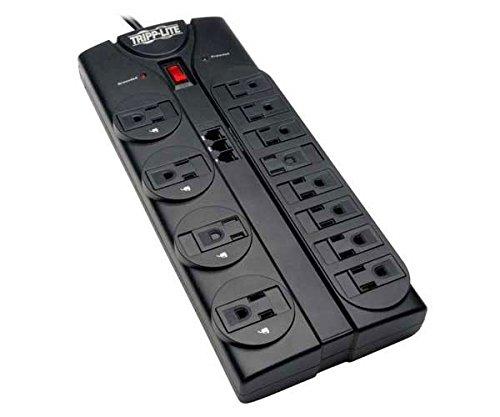 Tripp Lite's TLP1208TEL offers economical AC surge suppression for protection of workstations, PCs, telecommunication systems, electronics household and other sensitive equipment. The TLP1208TEL features 12 outlets, an 8-foot cord with a space-saving right-angle plug, and diagnostic LEDs to warn of suppressor damage. The unit has a surge suppression rating of 2160 joules to protect equipment against line noise and the strongest surges. Built-in RJ11 connectors prevent surges from damaging your modem/fax/telephone equipment. $150,000 lifetime insurance (US and Canada only).