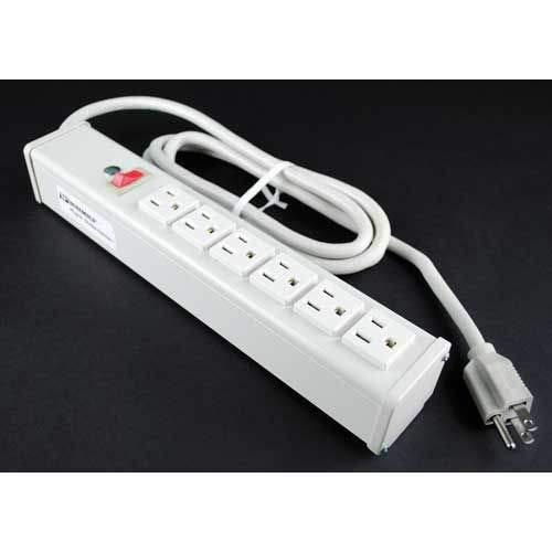 Wiremold Multi-Outlet Power Unit, 125V, 15A, 12-1/4"L, 6 Outlets, 15' Cord, R612. Six outlets, putty white aluminum housing, 15A, lighted switch. 15' (4.6m) 14/3 SJT putty white cord with NEMA5-15 plug. Length 12 1/4" (311mm). Receptacle center-to-center 1 1/4" (32mm). Snap-on, slide-off mounting. Surge protection. EMI/RFI noise reduction. Space saving low profile. Protection indication. Resettable circuit breaker., Lot of 1