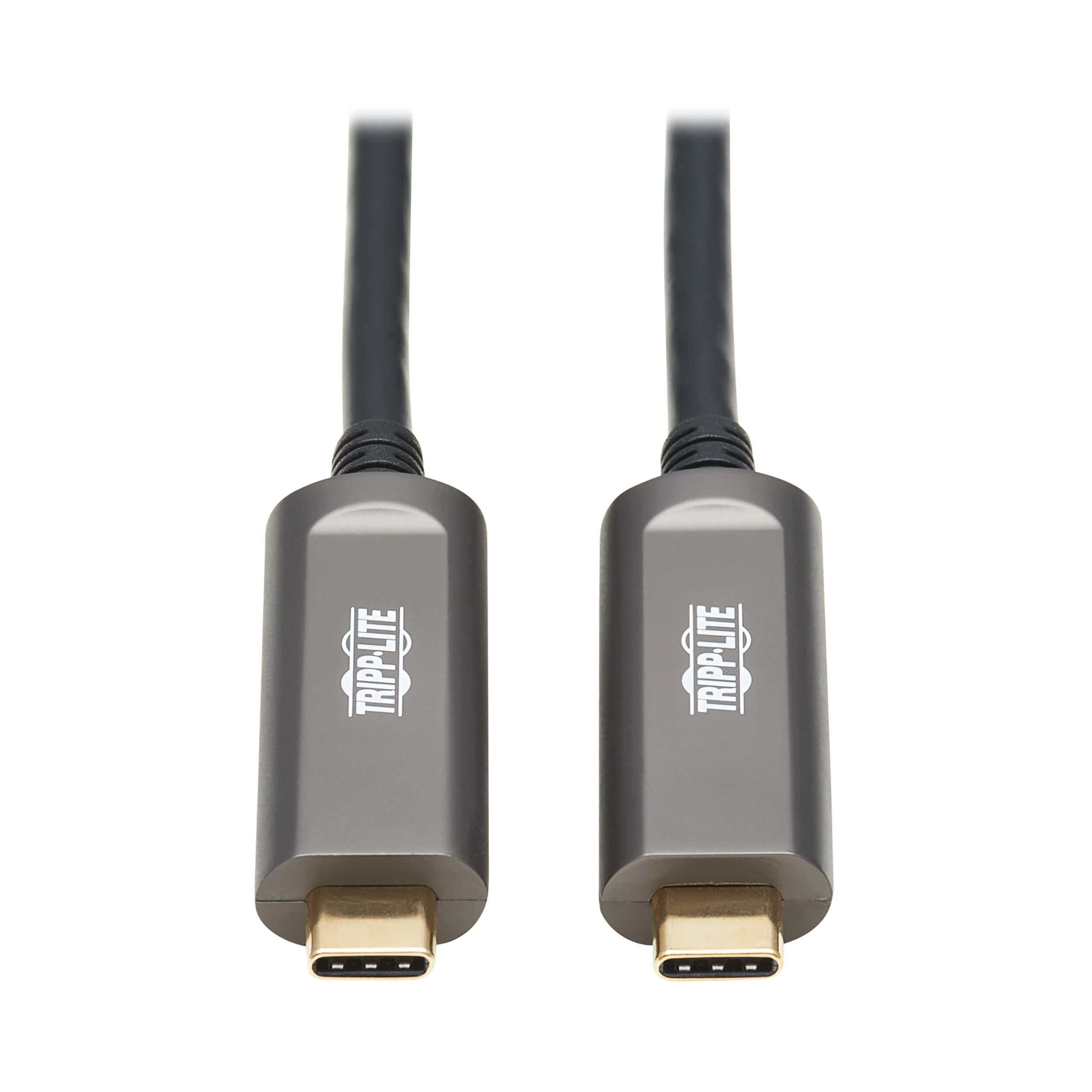 ACTIVE OPTICAL CABLE CONNECTS SERVERS, HARD DRIVES AND OTHER USB-C COMPONENTS: This USB 3.2 Gen 2 fiber optic cable (M/M) securely connects the USB-C port on your desktop, laptop or notebook computer to a USB-C device, such as a server, external hard drive or surveillance camera, located up to 10 meters (33 feet) away. This data-only cable supports USB 3.2 Gen 2 data transfer rates up to 10 Gbps. Note: This USB-C cable is not backward compatible with USB 3.2 Gen 1, 2.0 or 1.1 devices. ADVANCED FIBER CABLE IS EASIER TO INSTALL THAN COPPER: Because the fiber cable is slimmer and more flexible than standard copper USB cables, the U420F-10M-D3 is easier to install around corners and in hard-to-reach spaces behind equipment. It draws power from the connected device, so no external power supply is needed to transmit the USB signal across the longer distances unique to fiber optic cabling. CMP JACKET DESIGNED FOR IN-WALL INSTALLATIONS: The plenum-rated jacket has low smoke and flame characteristics, making it suitable for premise applications in ceilings, walls and ducts. 10 M CABLE LETS YOU DESIGN AN APPLICATION TO YOUR CUSTOM SPECIFICATIONS: This long cable allows you greater flexibility in placing your USB components. For instance, your camera or hard drive may be located in a different room away from your office or in a central location where others have access to it. The plug-and-play U420F-10M-D3 supports all major operating systems, including Windows, macOS and Linux. Note: This cable provides up to 1A of power to the connected USB device. If your device requires more than 1A, an external power supply will be required for the device.