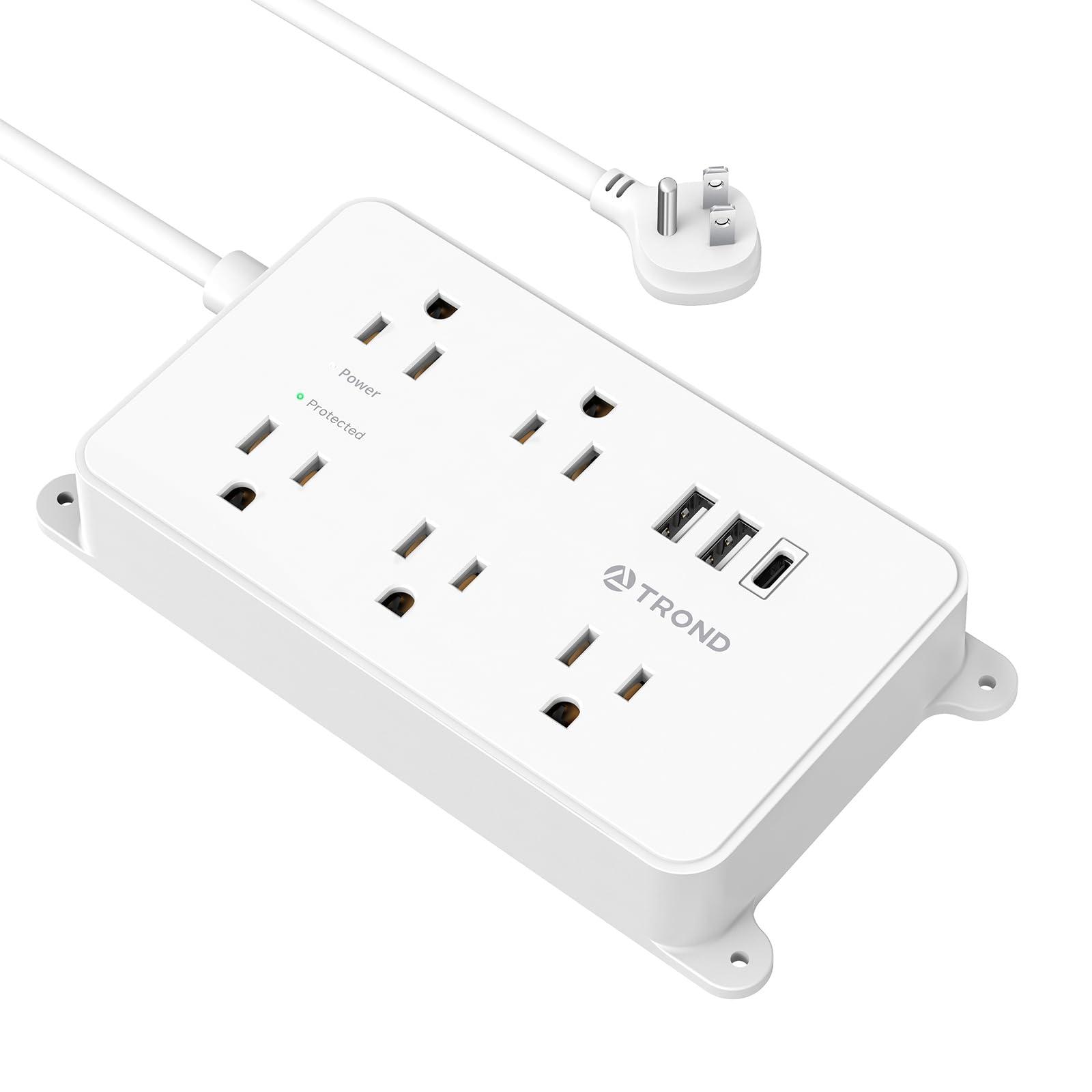 - Wall Mount Power Strip: This wall mountable power strip is a screw mountable design. Four screw-mounting tabs allow you to securely install this power strip and easily be reached, including behind the TV, workbench, garage, bedside, bathroom, laundry room, or under desk or cabinet, which is very low-profile and saves desktop space for you
