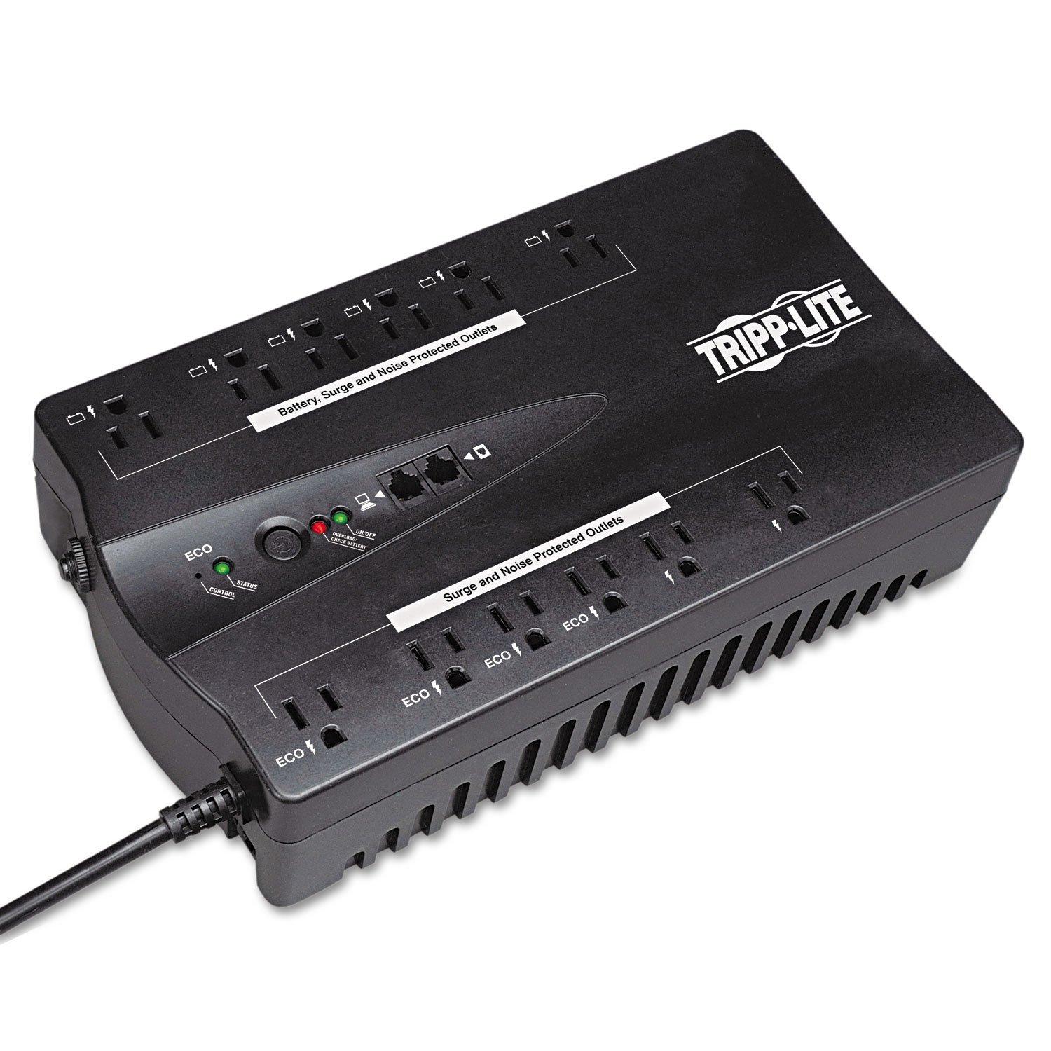 Designed for desktop use with computers, peripherals and telecom equipment. Provides standby UPS battery back-up protection against power failures. Built-in surge protection against voltage fluctuation and transient surges. Innovative eco outlets automatically power off peripherals when computer is turned off or when in sleep mode. Energy-efficient design has a 99% full load efficiency rating and cool operating temperature.