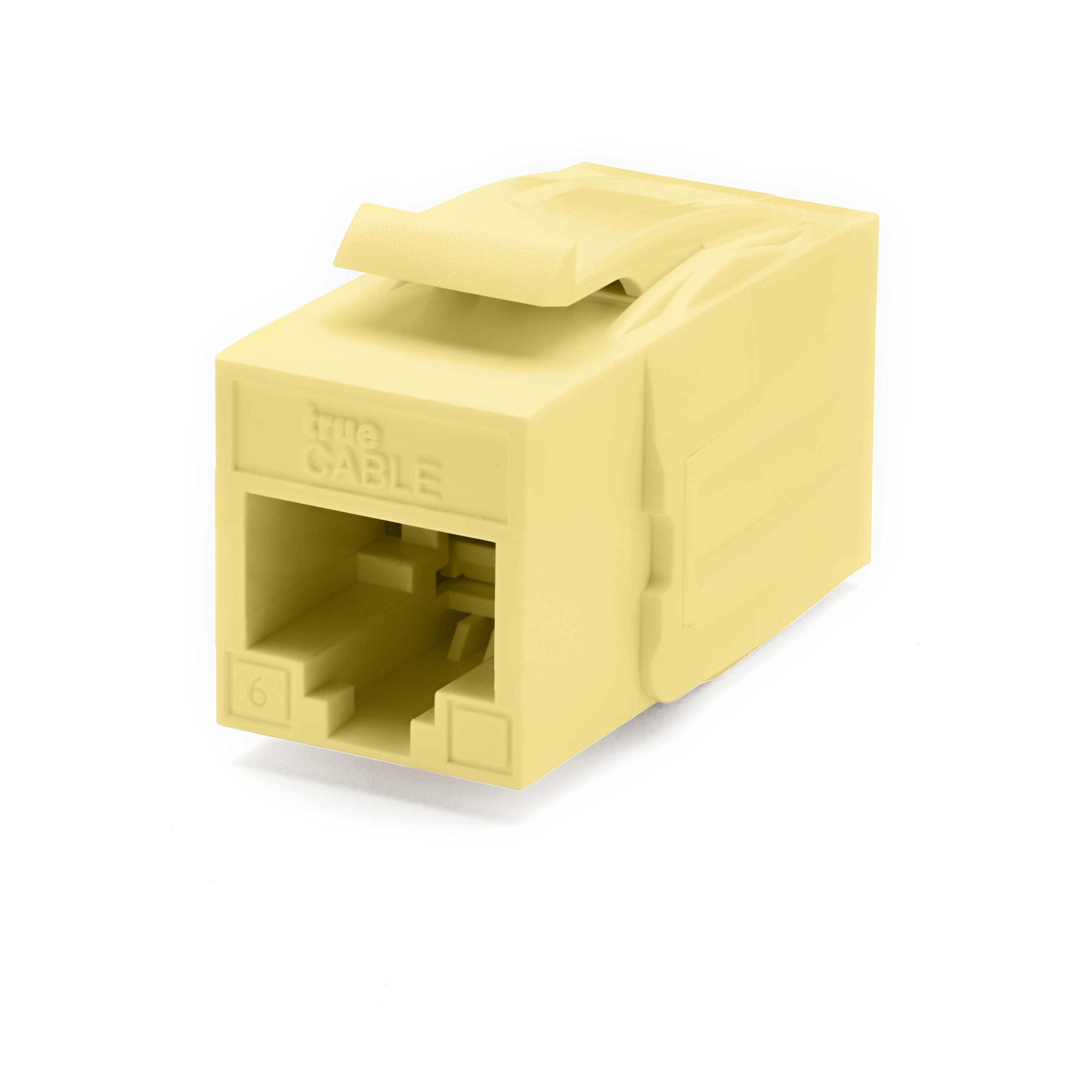 trueCABLE Cat6 Keystone Jack Coupler, Unshielded (UTP), PoE++ (4PPoE), UL Listed, ETL Verified, ANSI/TIA 568-2.D Cat 6 Performance Compliant, Female to Female RJ45 Couplers, Yellow, 6 Pack