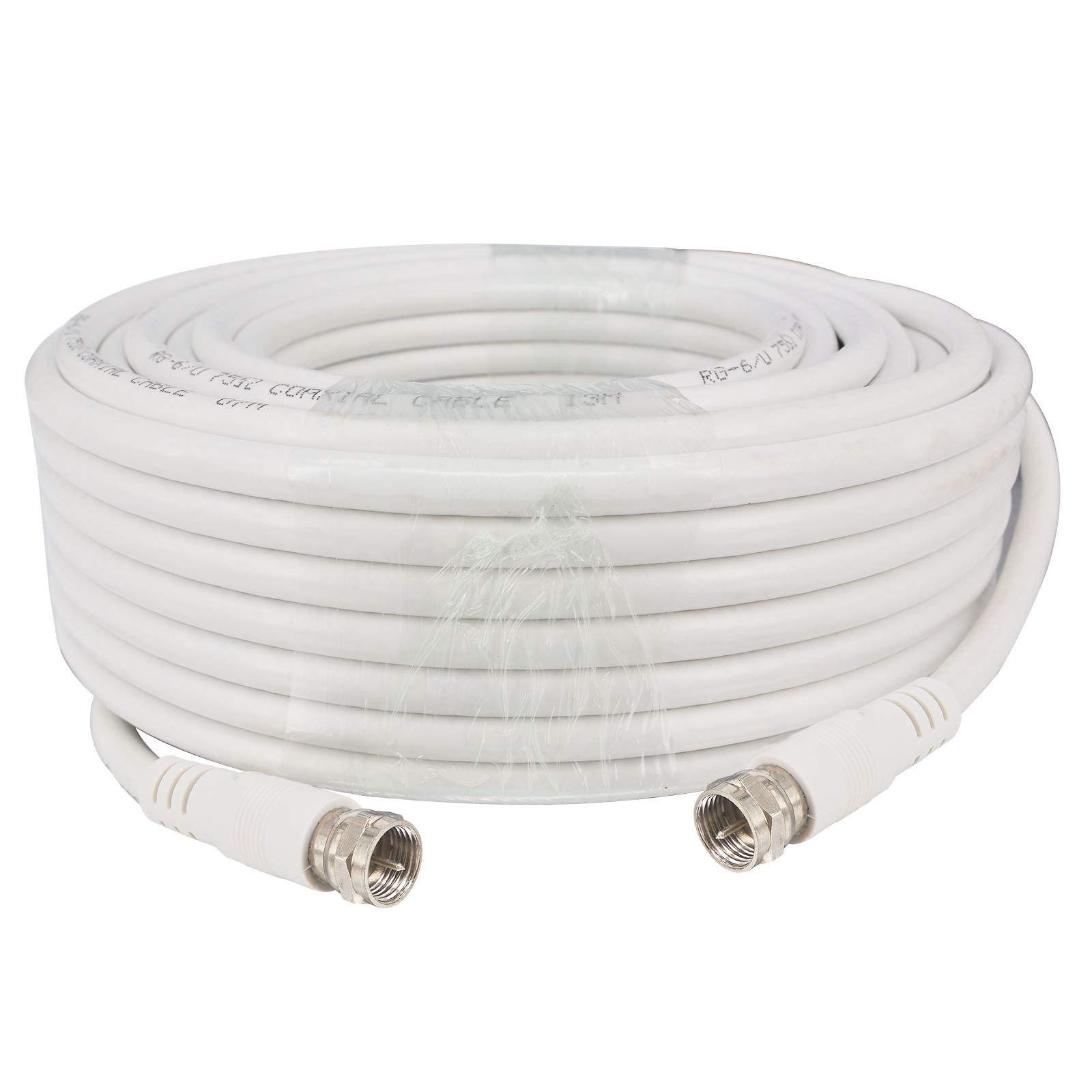 TV COAX Cable Weather Proof F Male to Male with RG6 Coaxial Cable Connector White Coax cable